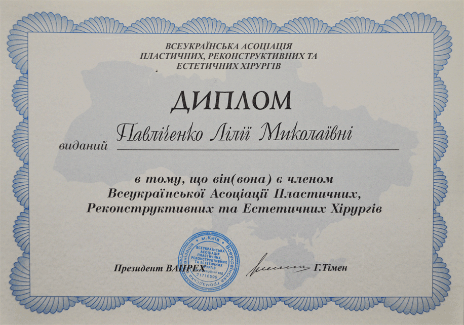 Член Всеукраинской ассоциации пластических, реконструктивных и эстетических хирургов;